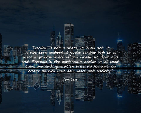 John Lewis Quote: Freedom is Not a State White Modern Wood Framed Art Print with Double Matting by ArtsyQuotes