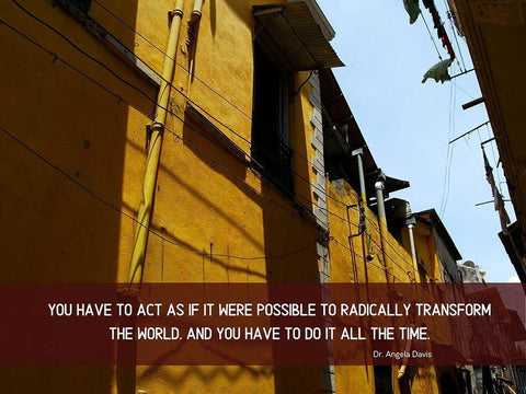 Dr. Angela Davis Quote: Radically Transform the World White Modern Wood Framed Art Print with Double Matting by ArtsyQuotes