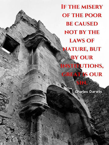 Charles Darwin Quote: Misery of the Poor White Modern Wood Framed Art Print with Double Matting by ArtsyQuotes