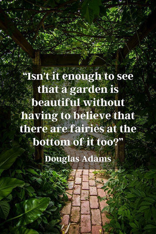 Douglas Adams Quote: Garden is Beautiful White Modern Wood Framed Art Print with Double Matting by ArtsyQuotes