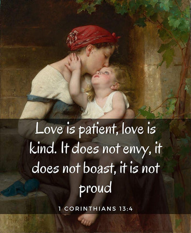 Bible Verse Quote 1 Corinthians 13:4, Leon Brazile Perrault, Mother with Child White Modern Wood Framed Art Print with Double Matting by ArtsyQuotes