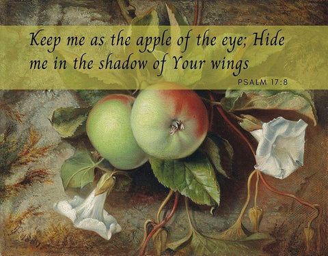 Bible Verse Quote Psalm 17:8, Edward John Poynter - Autumn Apples and Convolvulus White Modern Wood Framed Art Print with Double Matting by ArtsyQuotes