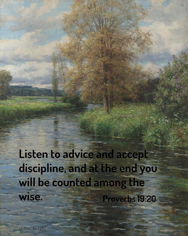 Bible Verse Quote Proverbs 19:20, Louis Aston Knight - At the Waters Edge White Modern Wood Framed Art Print with Double Matting by ArtsyQuotes
