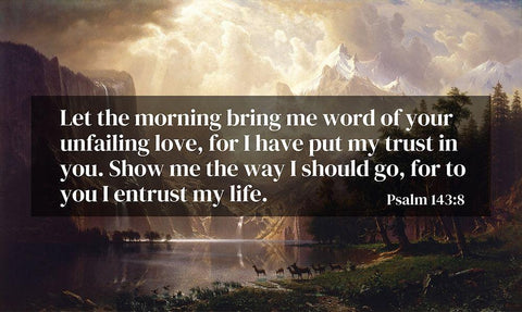 Bible Verse Quote Psalm 143:8, Albert Bierstadt - Among the Sierra Nevada Mountains California 1868 White Modern Wood Framed Art Print with Double Matting by ArtsyQuotes