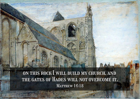 Bible Verse Quote Matthew 16:18, John Ruskin - Abbeville Church of St Wulfran White Modern Wood Framed Art Print with Double Matting by ArtsyQuotes