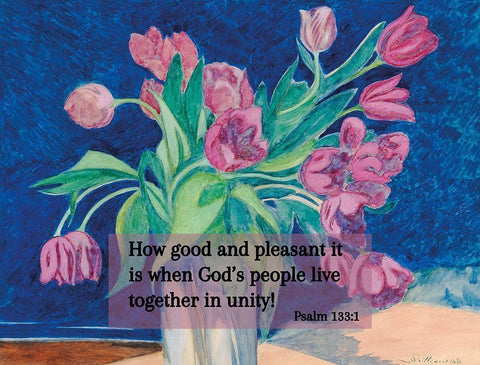 Bible Verse Quote Psalm 133:1, Leon Spilliaert - Pink Tulips in a Vase White Modern Wood Framed Art Print with Double Matting by ArtsyQuotes