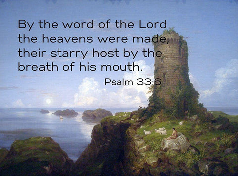 Bible Verse Quote Psalm 33:6, Thomas Cole - Italian Coast Scene with Ruined Tower White Modern Wood Framed Art Print with Double Matting by ArtsyQuotes