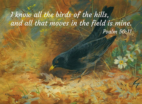 Bible Verse Quote Psalm 50:11, Archibald Thorburn - Blackbird White Modern Wood Framed Art Print with Double Matting by ArtsyQuotes