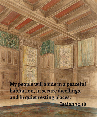 Bible Verse Quote Isaiah 32:18, Louis Comfort Tiffany - Design for an interior White Modern Wood Framed Art Print with Double Matting by ArtsyQuotes