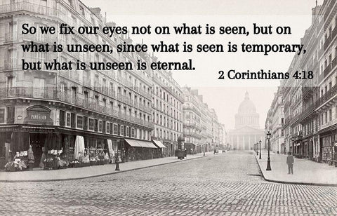 Bible Verse Quote 2 Corinthians 4:18, Charles Marville - Soufflot Street White Modern Wood Framed Art Print with Double Matting by ArtsyQuotes