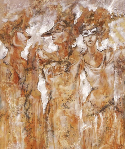 Masked Figures White Modern Wood Framed Art Print with Double Matting by Wiley, Marta
