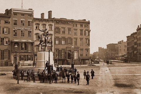 14th Street with Union Square and Washington Monument, about 1855 White Modern Wood Framed Art Print with Double Matting by Holmes, Silas A.