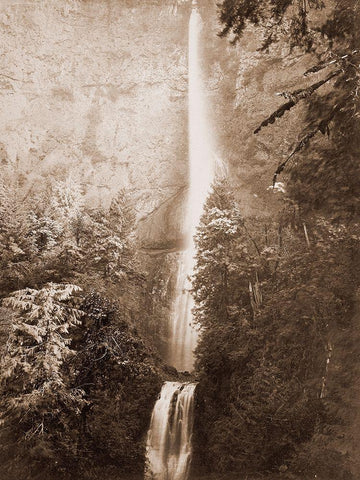Multnomah Falls, Columbia River, Oregon, 2500 feet., 1867 White Modern Wood Framed Art Print with Double Matting by Watkins, Carleton