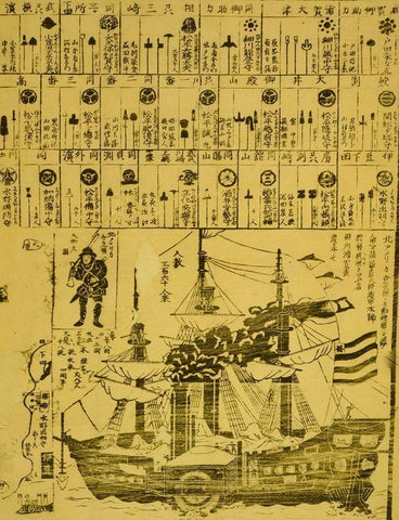 Perry arrives in Uraga-Soshu Province White Modern Wood Framed Art Print with Double Matting by Vintage Maps