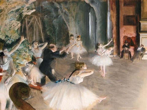 The Rehearsal Onstage White Modern Wood Framed Art Print with Double Matting by Degas, Edgar