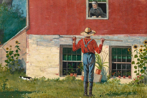 In the Garden (Rustic Courtship) White Modern Wood Framed Art Print with Double Matting by Homer, Winslow