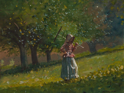 Girl with Hay Rake White Modern Wood Framed Art Print with Double Matting by Homer, Winslow