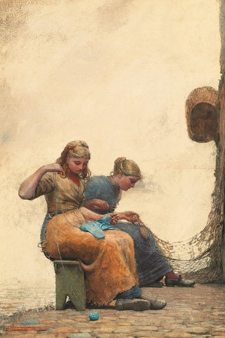 Mending the Nets White Modern Wood Framed Art Print with Double Matting by Homer, Winslow