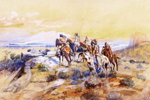 Watching the Iron Horse White Modern Wood Framed Art Print with Double Matting by Russell, Charles Marion