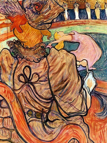 At the Nouveau Cirque the Dancer and Five Stuffed Shirts White Modern Wood Framed Art Print with Double Matting by Toulouse-Lautrec, Henri de