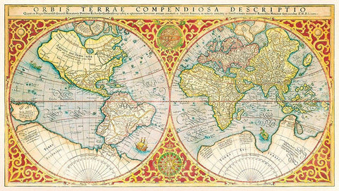 Orbis terrae compendiosa descriptio 1637 White Modern Wood Framed Art Print with Double Matting by Mercator, Gerhad