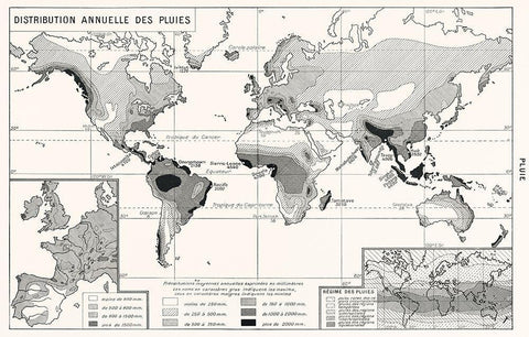 Annual Rainfall Distribution White Modern Wood Framed Art Print with Double Matting by Vintage Maps