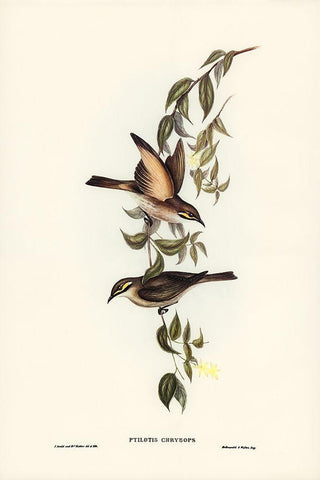 Yellow-faced Honey-eater-Ptilotis chrysops White Modern Wood Framed Art Print with Double Matting by Gould, John