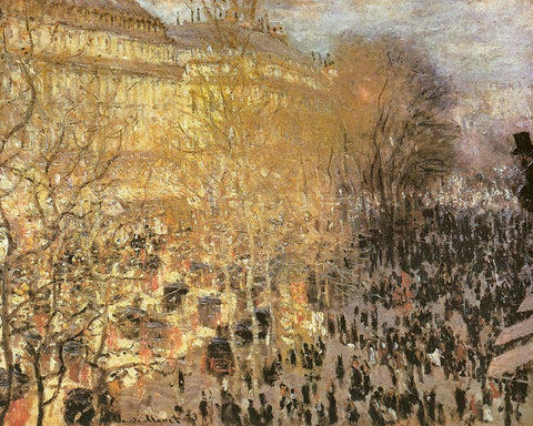 Le Boulevard des Capucines 1873 White Modern Wood Framed Art Print with Double Matting by Monet, Claude
