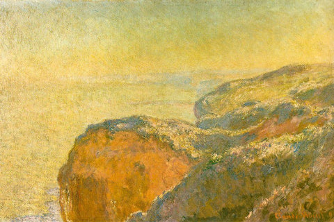 On the cliffs-Dieppe 1897 White Modern Wood Framed Art Print with Double Matting by Monet, Claude