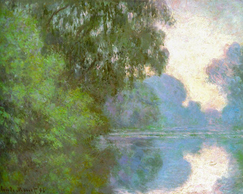 Seine near Giverny 1896 White Modern Wood Framed Art Print with Double Matting by Monet, Claude