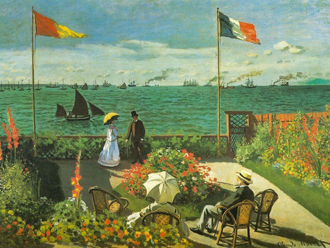 Terrace at Sainte-Adresse 1866 White Modern Wood Framed Art Print with Double Matting by Monet, Claude