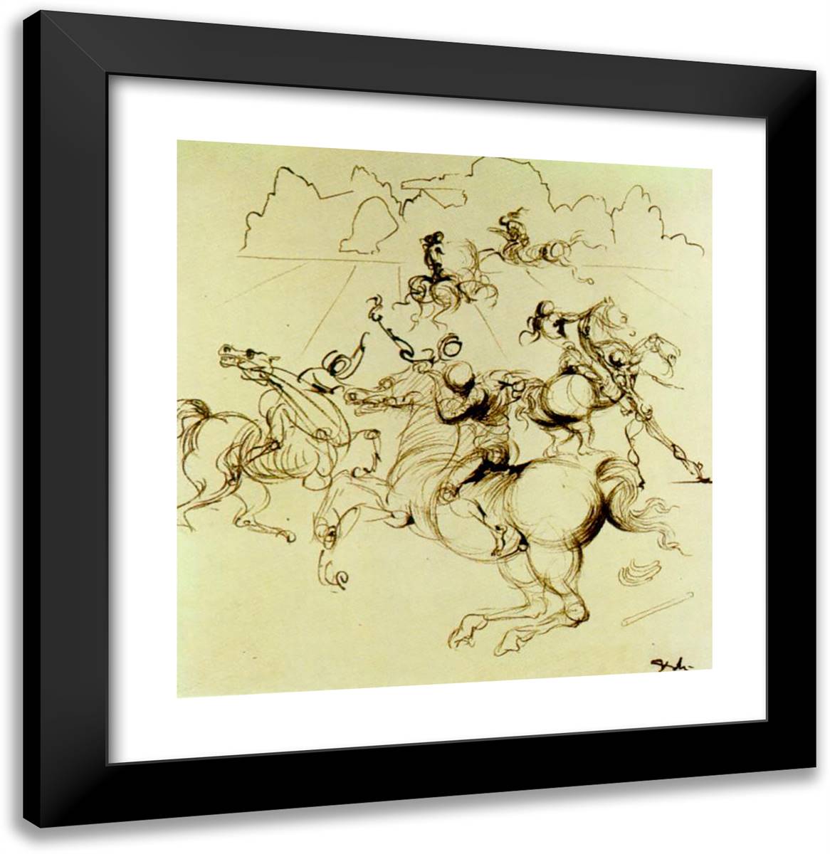 Surrealist Knights for a Four-Part Screen, Centre Right, 20x21 Black Modern Wood Framed Art Print Poster by Dali, Salvador