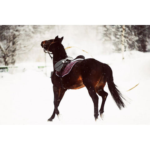 Race in the Snow Black Modern Wood Framed Art Print by Jenny Rainbow Fine Art