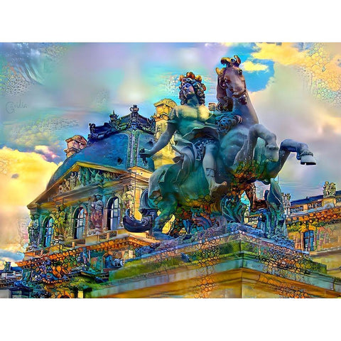 Paris France Louvre Museum Statue of Louis XIV Black Modern Wood Framed Art Print by Gavidia, Pedro