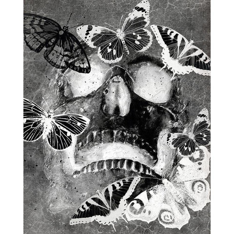 Flower Skull White Black Modern Wood Framed Art Print by Kimberly, Allen