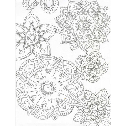 Floral Mandala Black Modern Wood Framed Art Print by Varacek, Pam