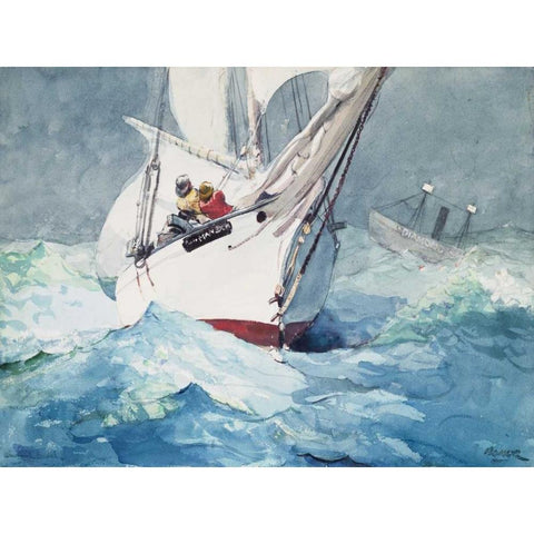 Reefing sails around Diamond Shoals, Cape Hatteras Black Modern Wood Framed Art Print by Homer, Winslow