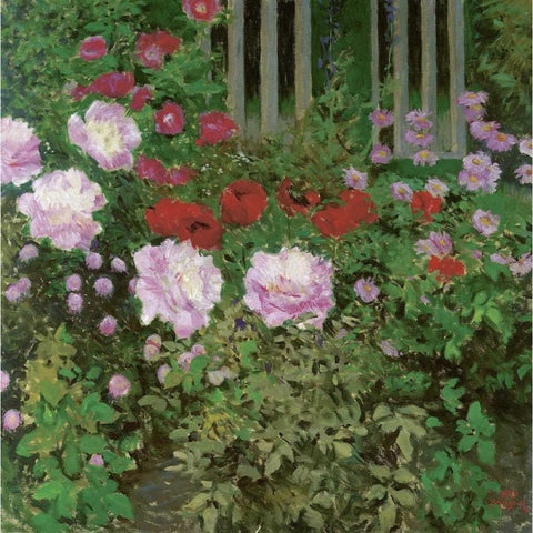 Flowers and Garden Fence Black Modern Wood Framed Art Print by Moser, Koloman