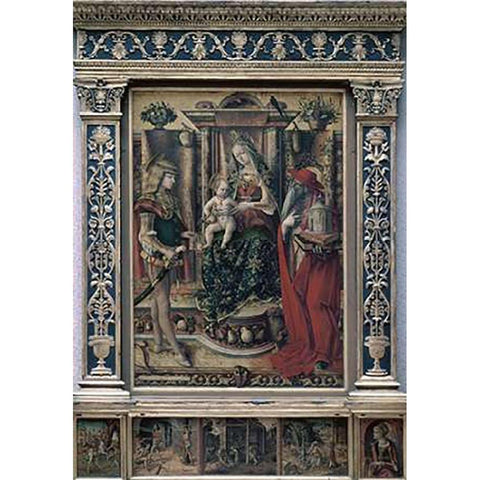 Madonna and Child With St. Jerome and St. Sebastian Black Modern Wood Framed Art Print by Crivelli, Carlo