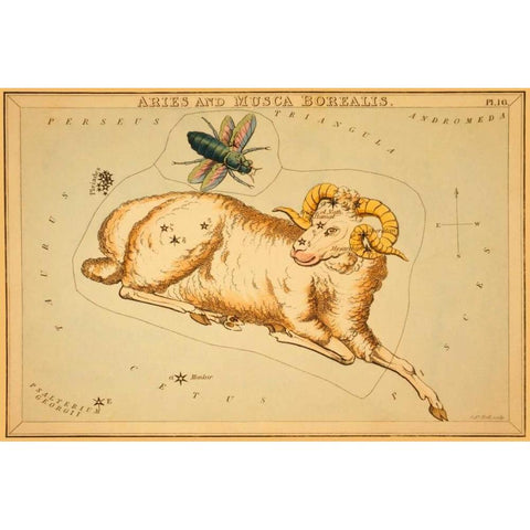 Aries and Musca Borealis, 1825 Black Modern Wood Framed Art Print by Aspin, Jehoshaphat