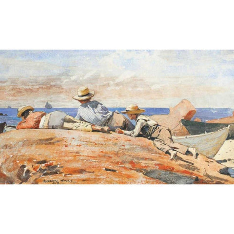 Three Boys On The Shore Black Modern Wood Framed Art Print by Homer, Winslow