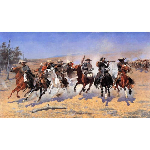 A Dash For Timber Black Modern Wood Framed Art Print by Remington, Frederic