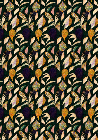 Leafs And Corn Pattern Black Modern Wood Framed Art Print by Treechild