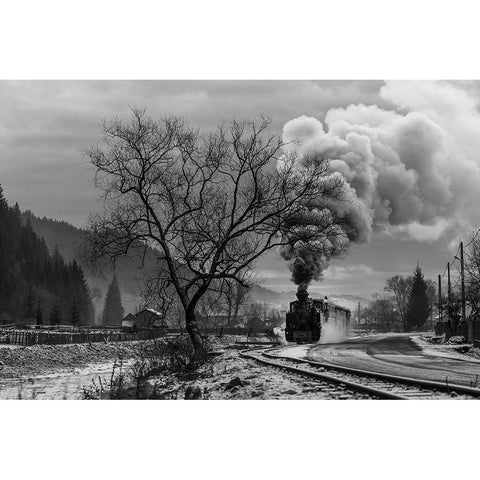 Mocanita Hutulca Black Modern Wood Framed Art Print by Dorin Lucian, Sveduneac