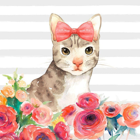 SMALL CAT WITH FLOWERS Black Modern Wood Framed Art Print by Atelier B Art Studio