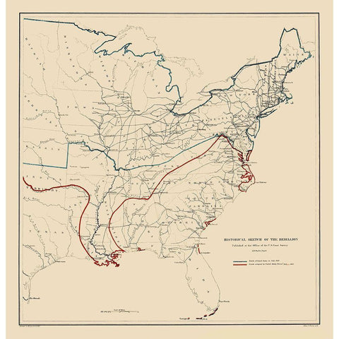 Eastern United States Rebellion - Bache 1863 Black Modern Wood Framed Art Print by Bache