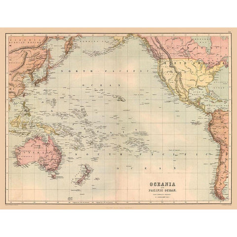 Oceania Pacific Ocean - Black 1867 Black Modern Wood Framed Art Print by Black