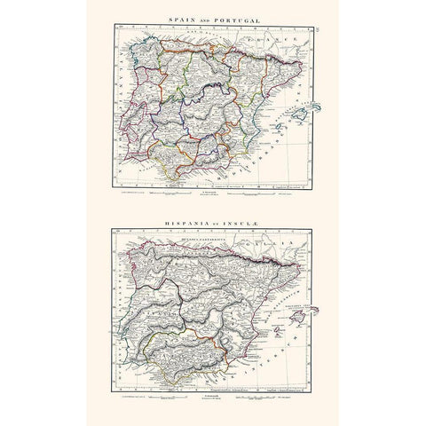 Spain Portugal - Arrowsmith 1828 Black Modern Wood Framed Art Print by Arrowsmith