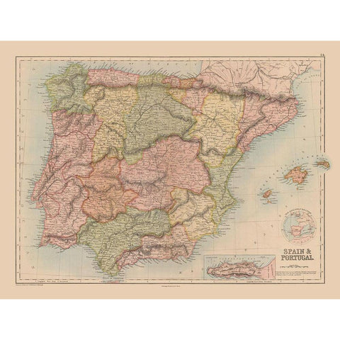 Spain Portugal - Black 1867 Black Modern Wood Framed Art Print by Black