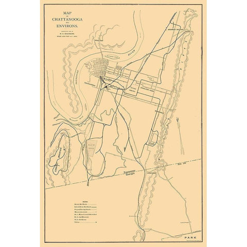 Chattanooga Tennessee - Birchmore 1895 Black Modern Wood Framed Art Print by Birchmore
